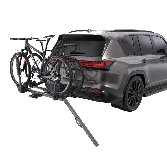 Der Einbau einer benutzerfreundlichen Rampe vereinfacht das Be- und Entladen Ihrer Elektrofahrräder erheblich. In Verbindung mit einer verstellbaren Vorderradhalterung und geformten Gurten sorgt unser Träger für eine bequeme, passgenaue Unterstützung der Räder Ihrer Fahrräder und sichert sie während der gesamten Reise fest.